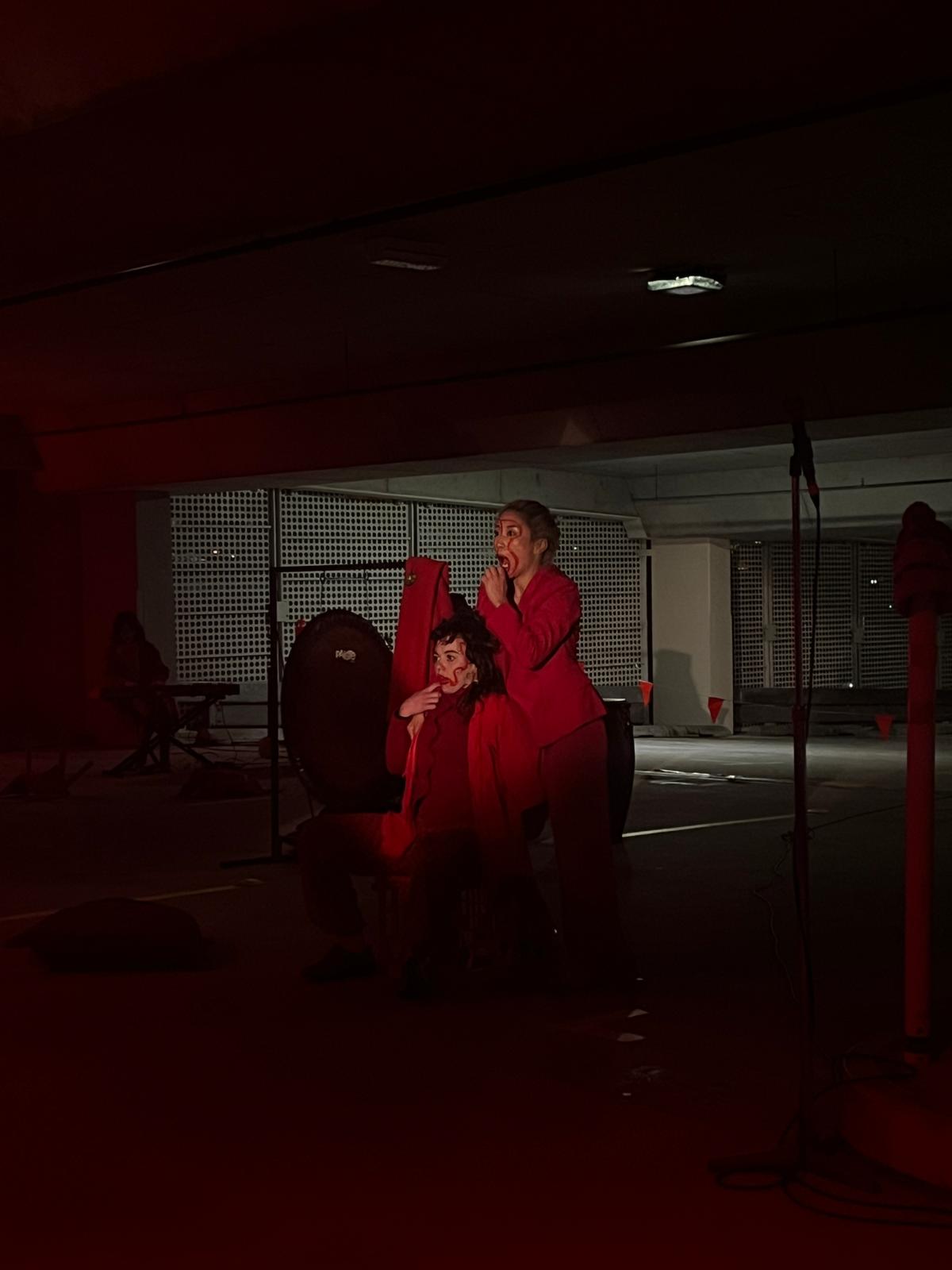 A meditation on capitalist routine, digital saturation and urban alienation atop a car park. Improvised music and movement centres around the grounding resonance of an orchestral gong, creating a ritualised interruption to the chaos of modern life.