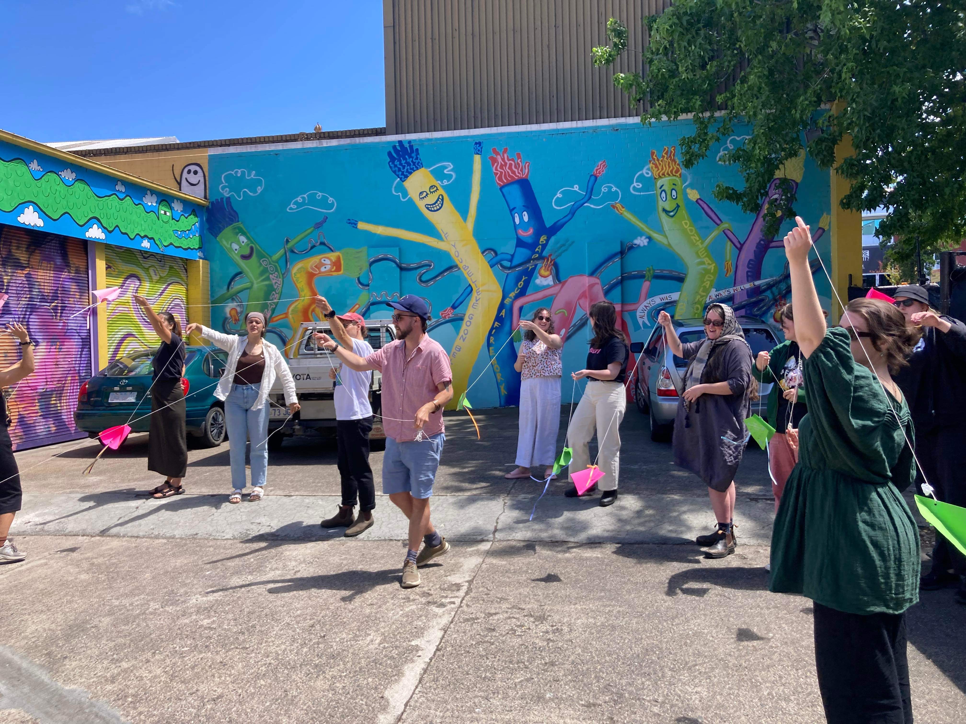 Kite making with Caitlin Fargher for International Kite Day, in the Good Grief courtyard