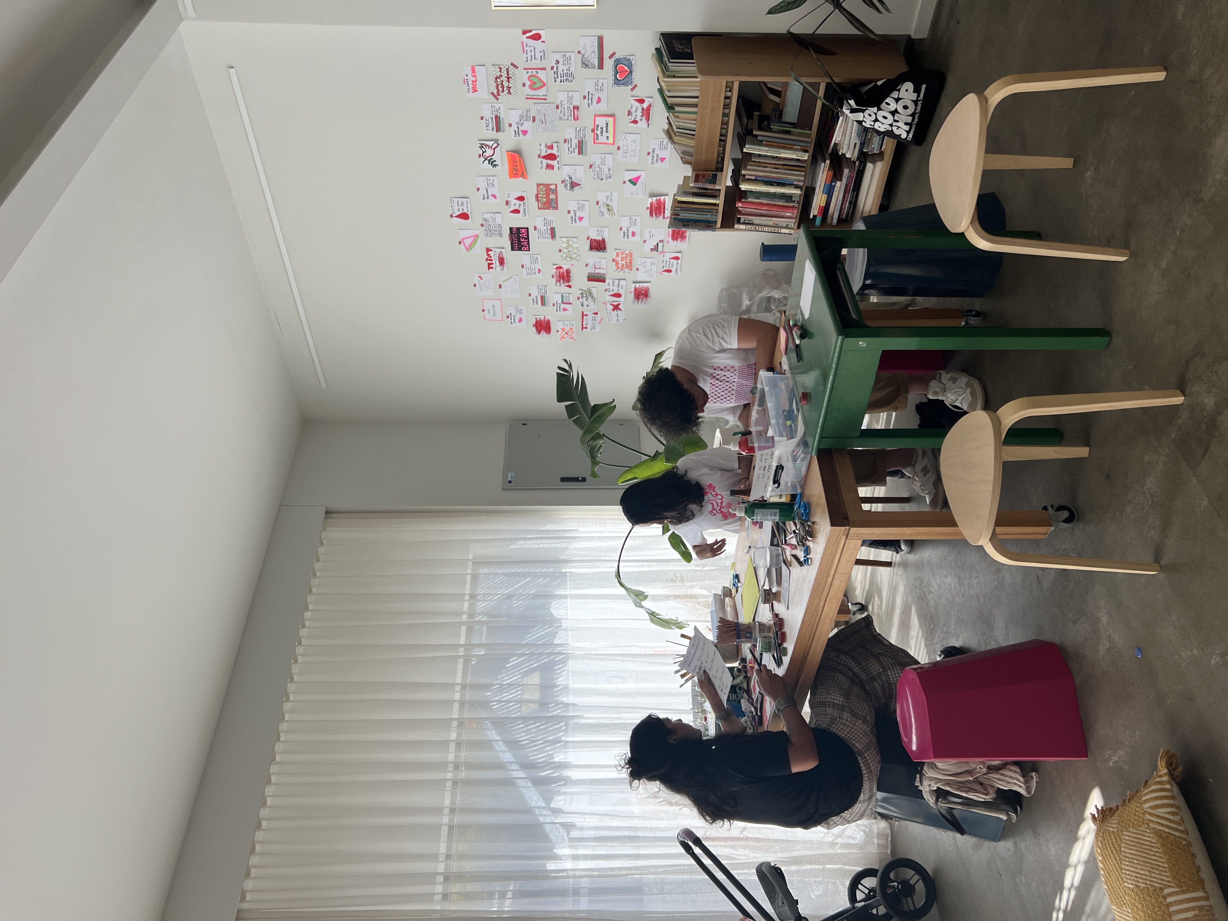Making DIY flags out of found materials with Maggie Abraham (take it to your next protest or action) and postcards to politicians with Sharifah Emalia Al-Gadrie